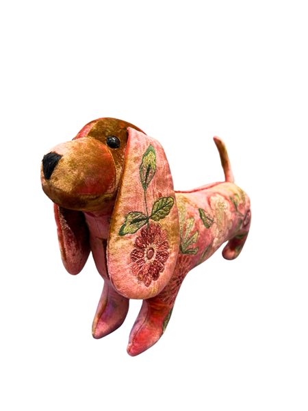 Introducing the BOUQUET: Shaded Pink Dachshund, a delightful creation that combines playful charm with luxurious craftsmanship, handcrafted in Germany by Anke Drechsel.